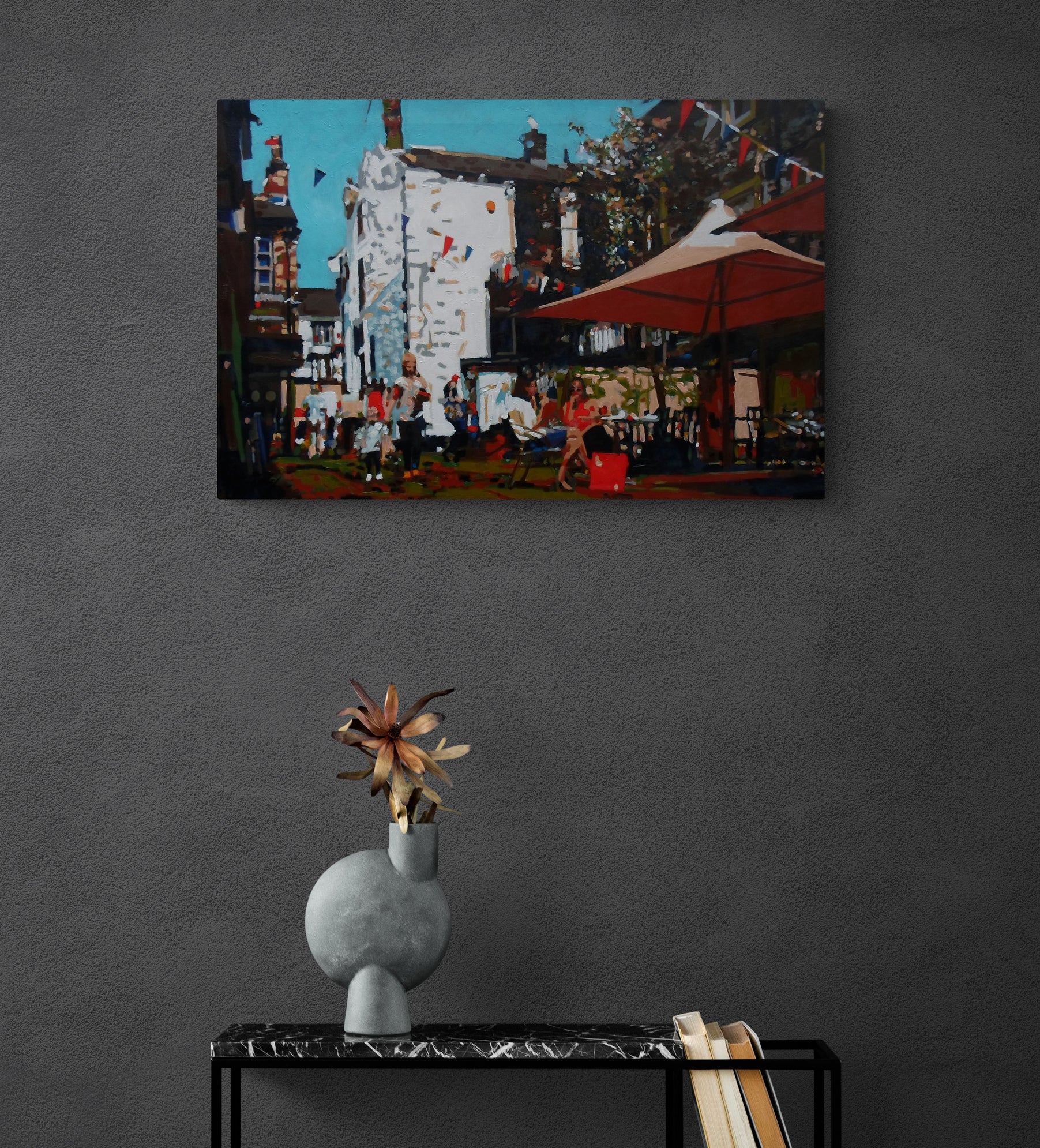 A sunny day in a courtyard just off the high street in Clitheroe.